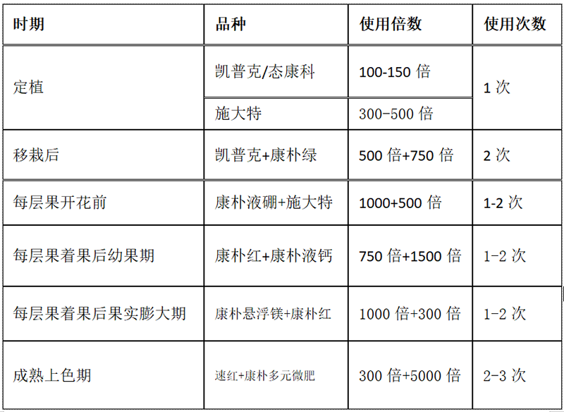生育后期根系吸收能力降低,養(yǎng)分吸收量逐漸減少,為延長結(jié)果期,葉面追肥十分重要。